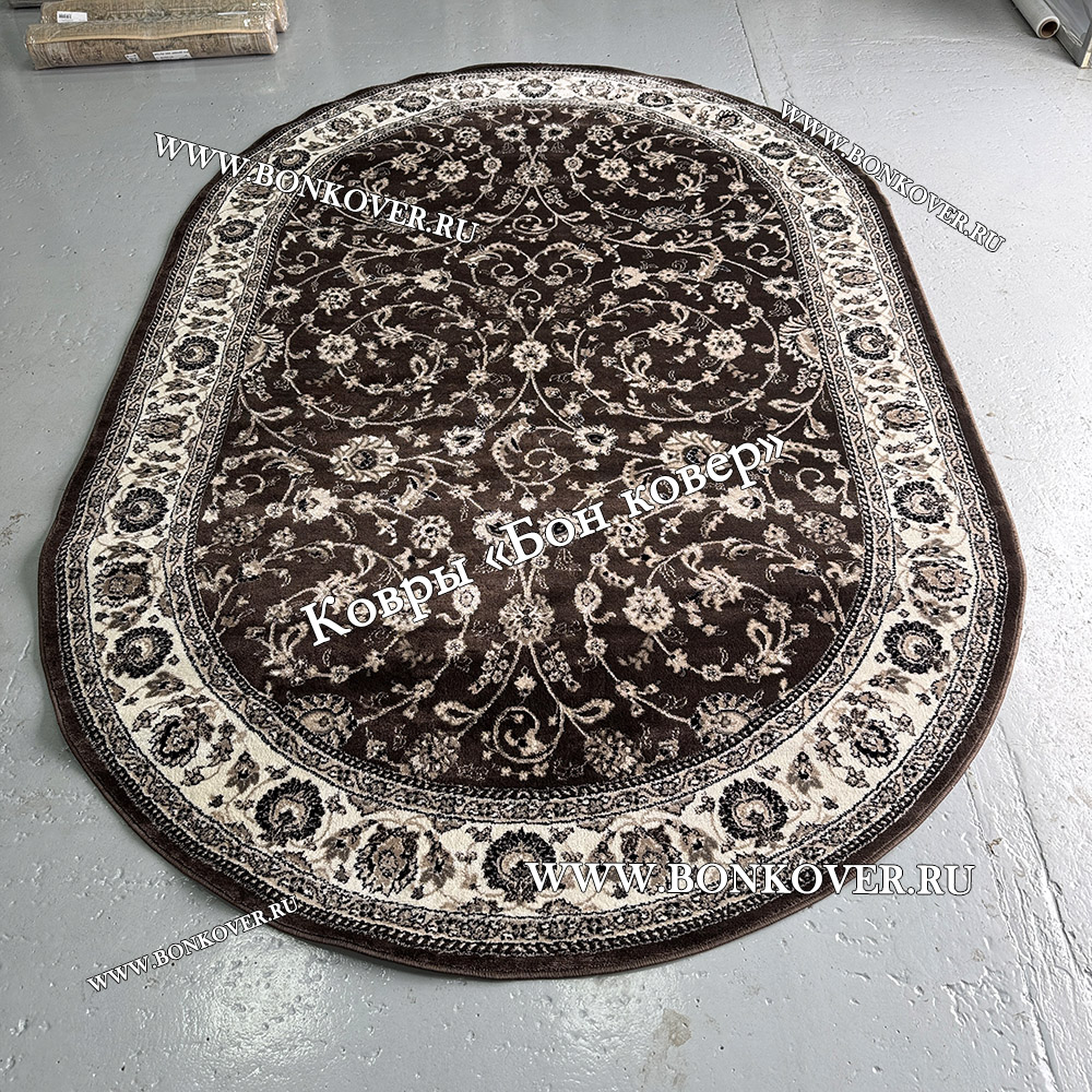 Шикарный Ковер Для Гостиной Арт 23857 Темно-Коричневый Овал наполняет интерьер комнаты теплом и уютом, гармонично сочетает в себе изящество и красоту. Он создан из высококачественных материалов, прочный и долговечный.
