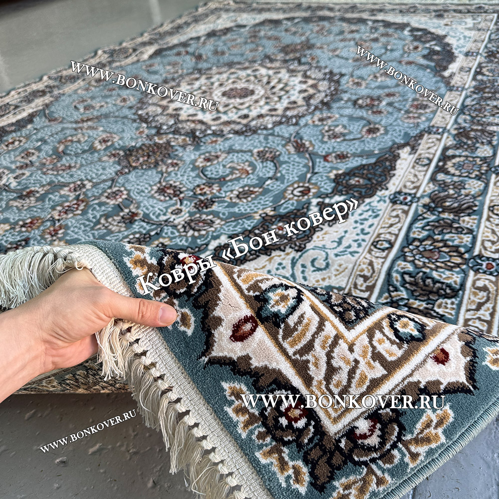 Красивый Ковер Для Гостиной Медальон Голубой Дизайн 30319 наполняет интерьер квартиры теплом и уютом, гармонично сочетает в себе изящество и стиль. Он создан из современных материалов, комфортный и долговечный.