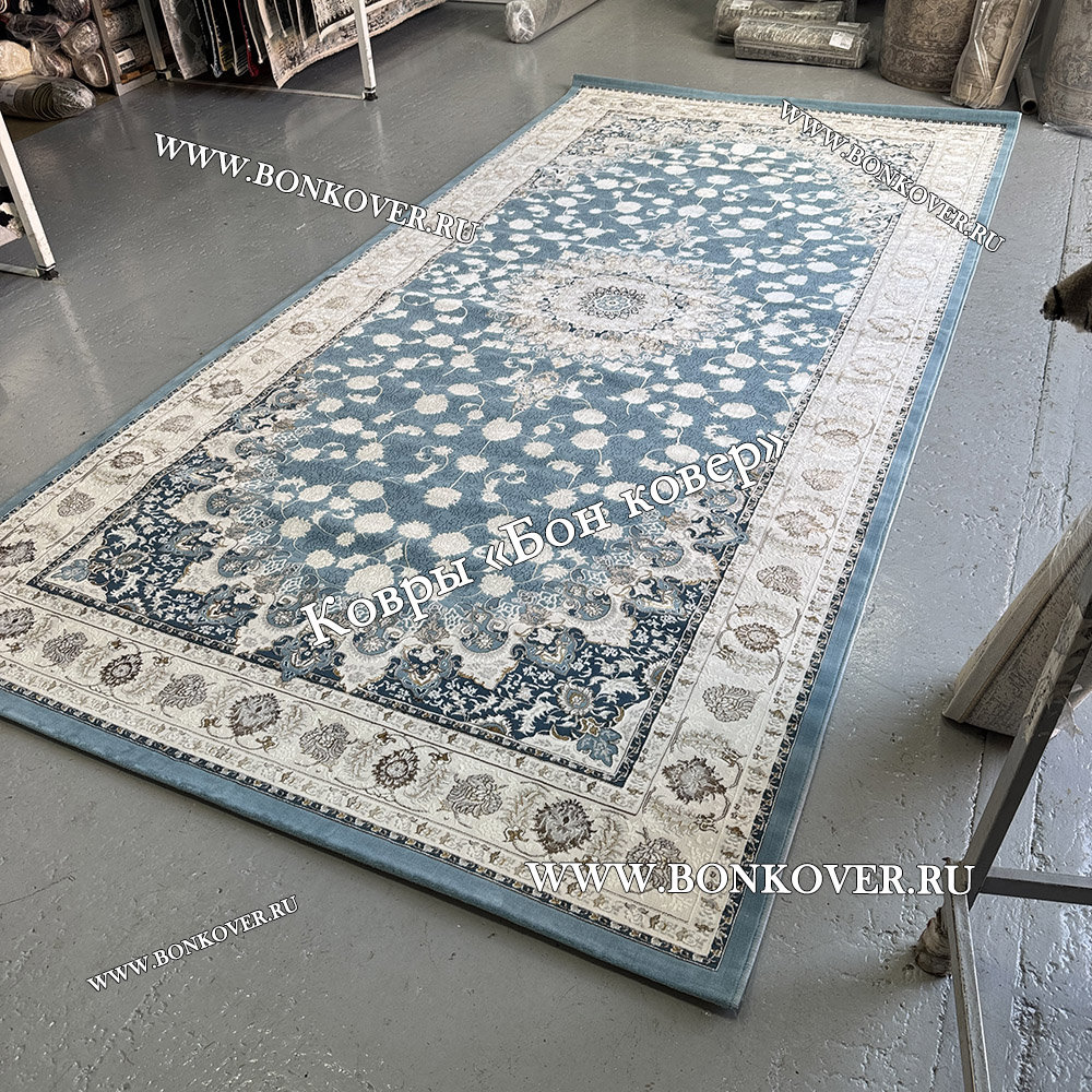 Турецкий Ковер Для гостиной New дизайн 99 Голубой станет внезапным преображением жилого помещения, подчеркивая высокий статус семьи владельца.