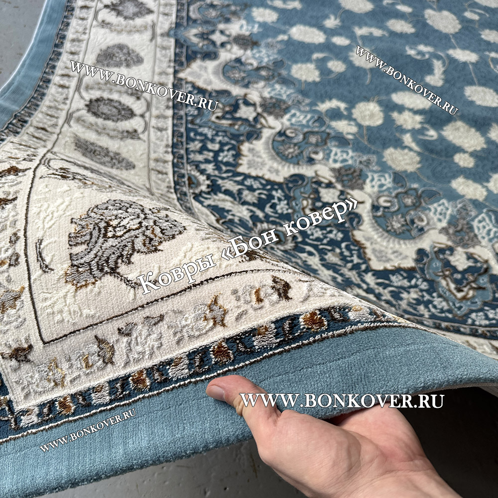 Турецкий Ковер Для гостиной New дизайн 99 Голубой станет превосходным дополнением интерьера, оформленного в современном или классическом стиле. Мягкое, но прочное, ковровое изделие обеспечивает тепло- и шумоизоляцию, отличается длительным сроком эксплуатации, пожаробезопасностью, экологичностью и высокой износостойкостью, является отличным противодействием от повышенной влажности в комнате и утеплителем для холодного пола. Благодаря качеству материалов, ковер не деформируется, сохраняет форму под тяжестью предметов мебели. За его поверхностью легко ухаживать.
